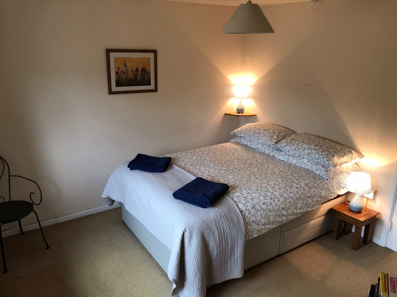 Trees and high hedges completely surround the property giving you privacy and shelter. There is a bench, BBQ area. Parking is private and on site.